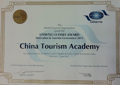 5月9日联合国世界旅游组织公布了2011年联合国世界旅游组织尤利西斯奖获奖名单。我院的“全国游客满意度调查”项目获得该奖项的政府创新奖。这是国内首个获得世界旅游组织的研究奖项。国家旅游局邵琪伟局长、杜江副局长对此给予了充分肯定,认为此奖项既是一种荣誉,更是我国旅游管理创新与旅游学术成果面向世界的一次重要展示。